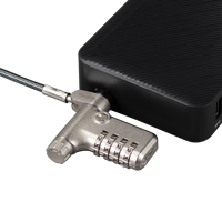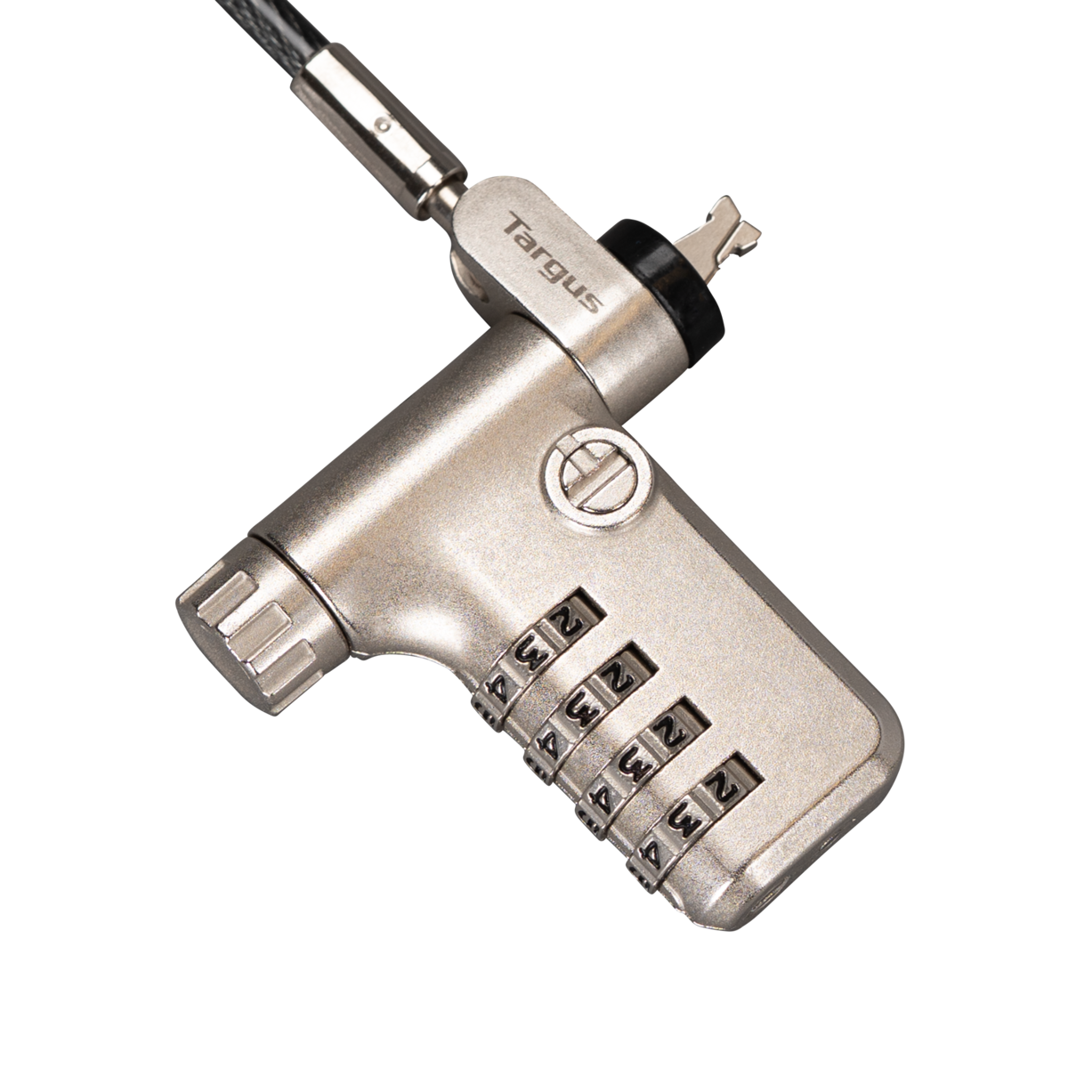 - Self-resettable 4-digit combination lock, plus serialized master code for IT management
