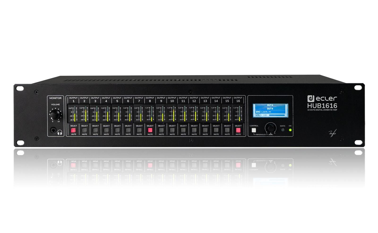 HUB1616 is a digital zone manager with 16 inputs and 16 outputs, an evolution of its predecessor eMIMO1616. It has the HANGAR embedded web-server application (control from standard web browser in Windows / MacOS, etc.) for its configuration; remote control from physical wall installation panels, call (paging) stations and applications for mobile devices (Android, iOS). Includes DSP with specific functions for both inputs and outputs. HUB Series offers multiple possibilities, being intuitive and easy to configure. From the least experienced user to the most expert, you can set up a professional audio installation in a matter of minutes (Plug and Play). It is the perfect solution for any type of sound that requires managing and controlling different zones.