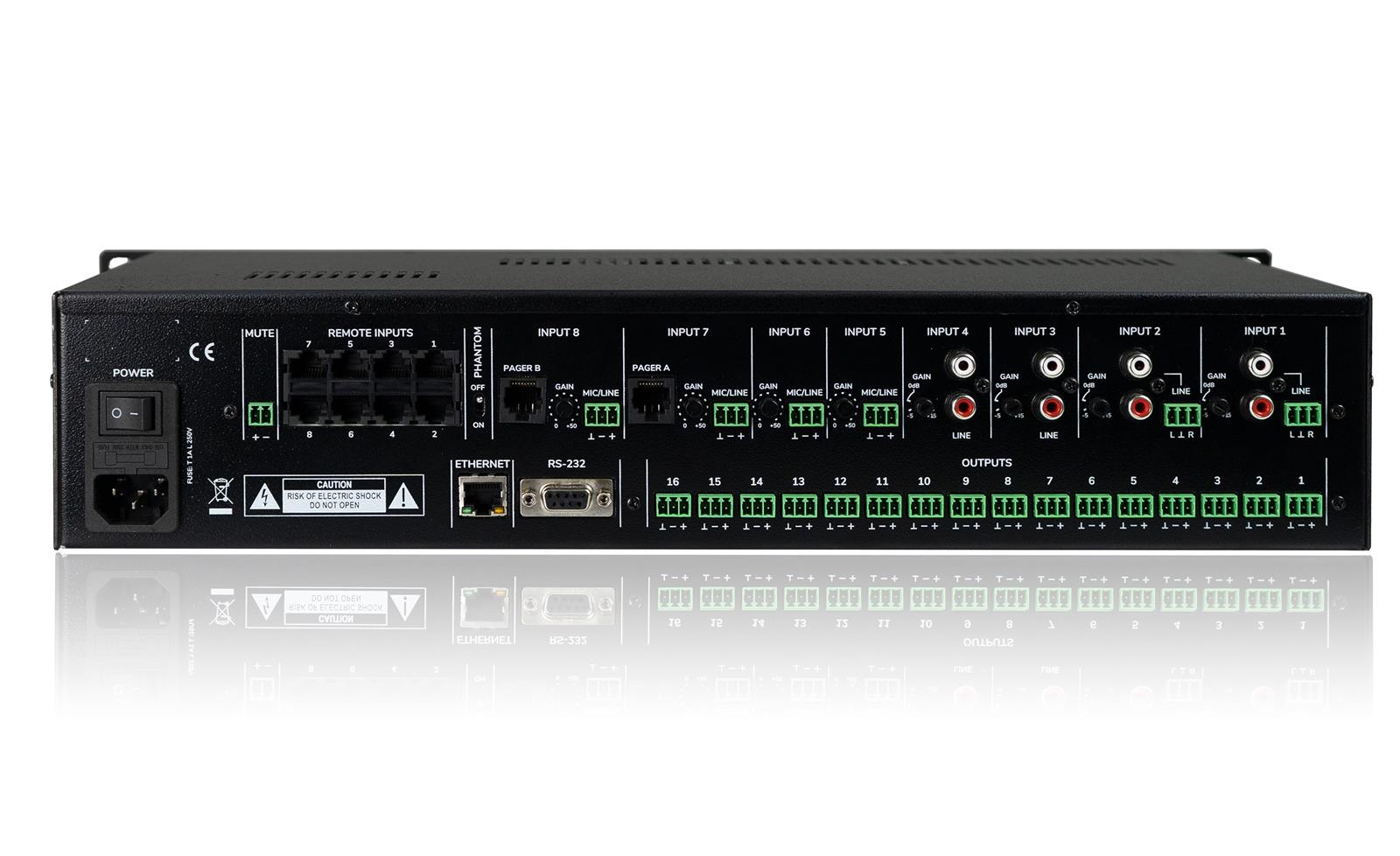 - 16 inputs, 16 outputs digital zoner with integrated DSP