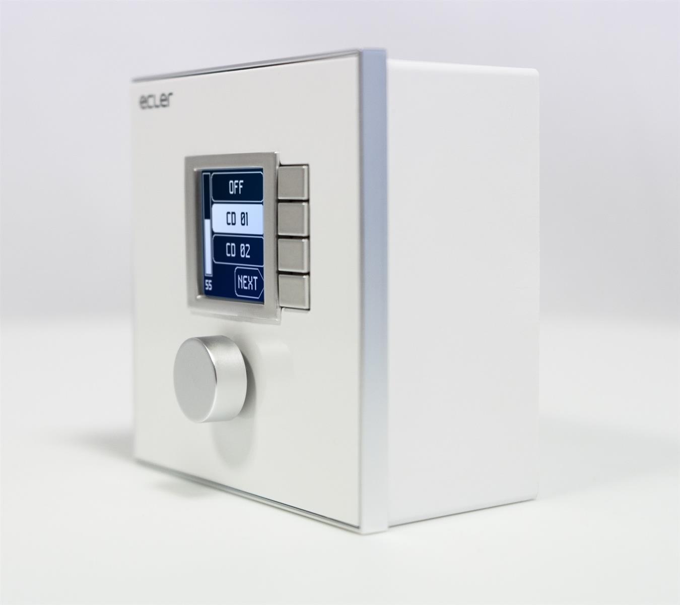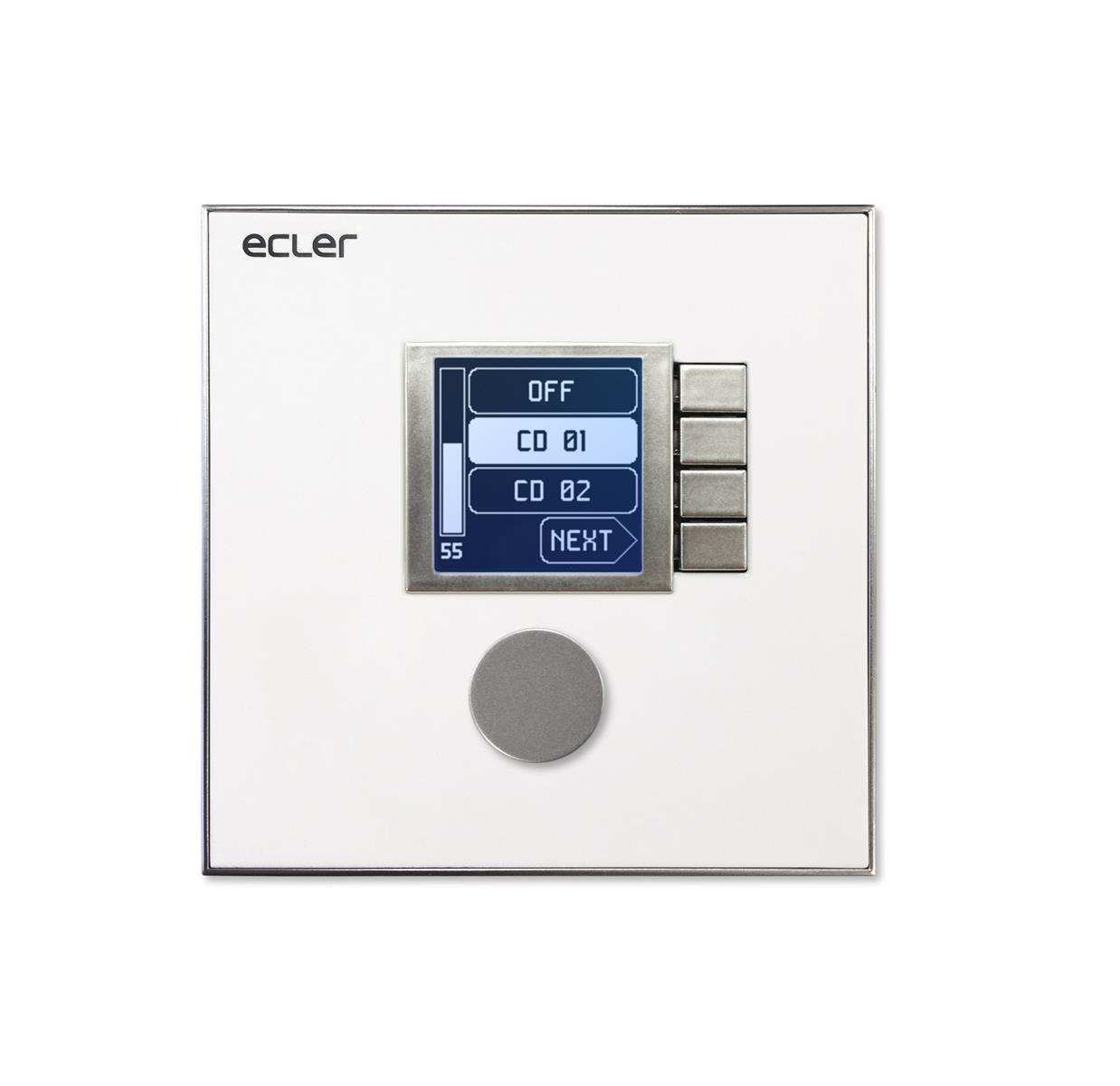 WPNET4KV is an EclerNet compatible wall panel, featuring an LCD screen, a digital rotary encoder and 4 direct selection keys. Its end-user control features are volume control, source and preset selection functions. Equipped with Ethernet interface and compatible with PoE (Power over Ethernet) or local power supply.