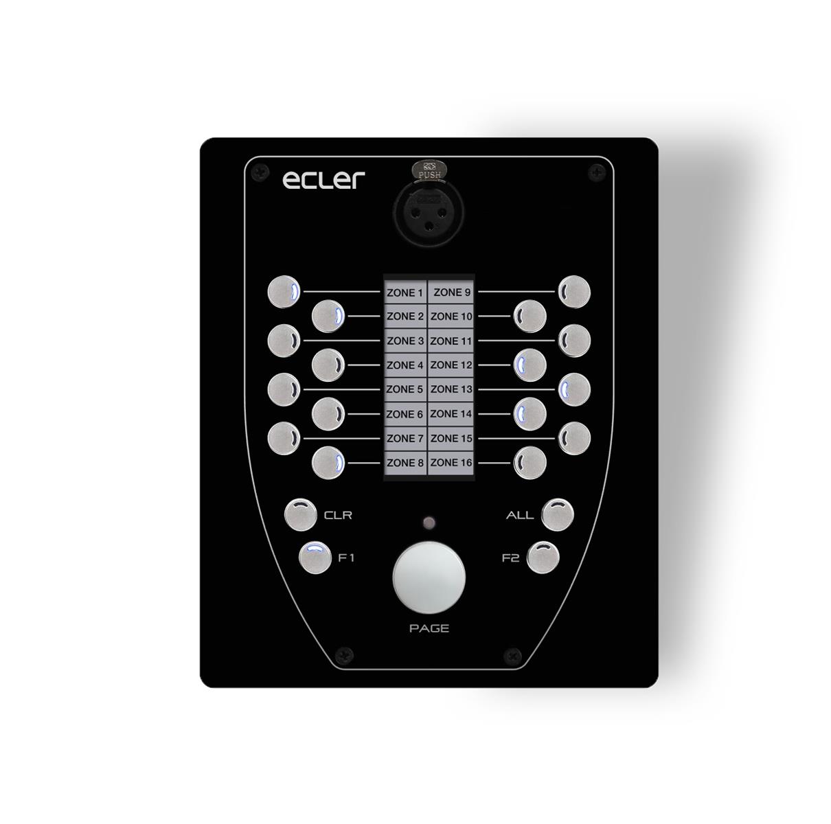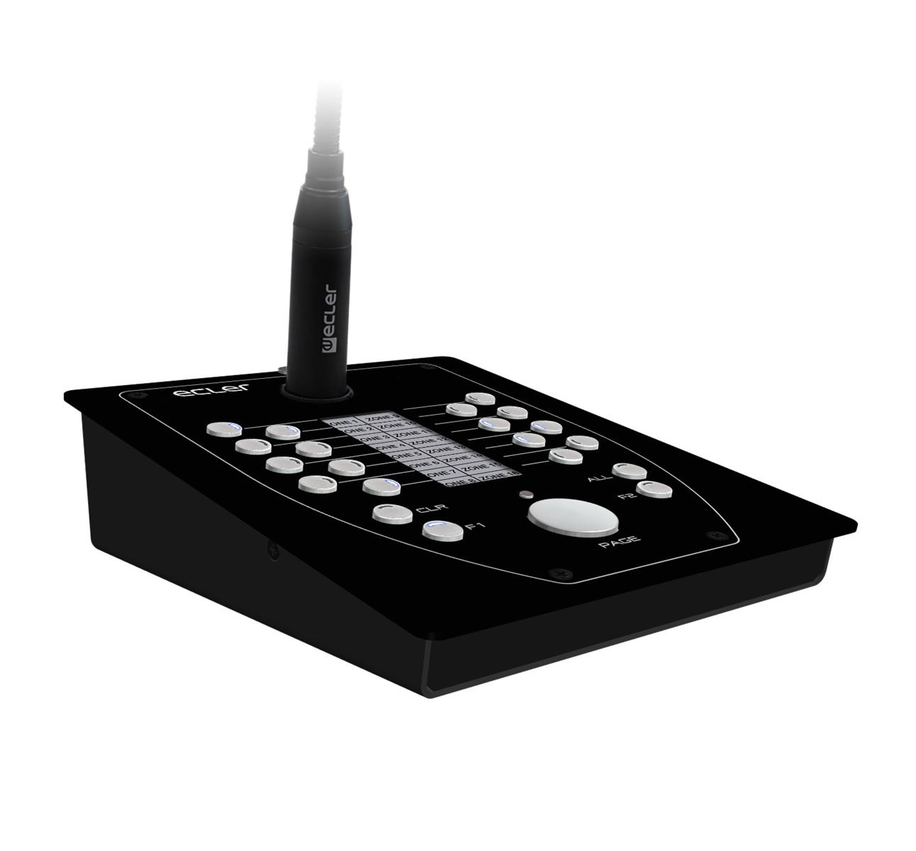 eMPAGE is a digital paging station (MPAGE16's evolution), compatible with HUB, MIMO88, MIMO88SG and MIMO1212SG digital matrixes. Includes: a gooseneck cardioid microphone (removable); 16 zone-selection keys; ALL, CLEAR and PAGE keys; 2 programmable keys, F1 & F2, for zone-group selection. Text labelling for destination areas by means of programmable electronic ink display.