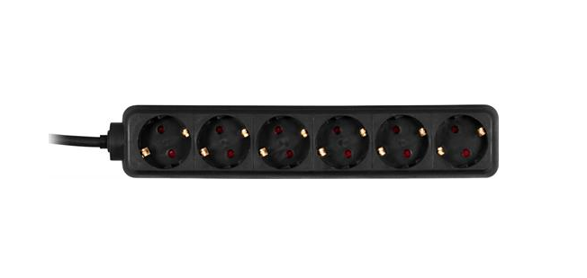 6 socket type F, 5.0 m cable length, black