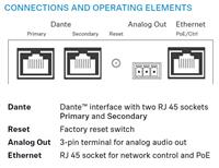 - Dante (RJ-45) 2 x Digital Dante Network Audio Channels