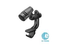 The frequency response and cardioid pick-up pattern are optimized for drum sets and other percussion instrument miking, while also producing exceptional results on all forms of brass and woodwind. An integral stand mount screws directly onto mic stands and included clip attaches mic to rim of drum. Very high sound pressure level handling, in excess of 160 dB, is combined with a balanced, clear, low distortion signal similar to a high-end studio condenser microphone. Lightweight voice coil provides extended high frequency and rapid transient response. A tough reinforced glass fiber body takes the knocks and shocks and suppresses impact noise.