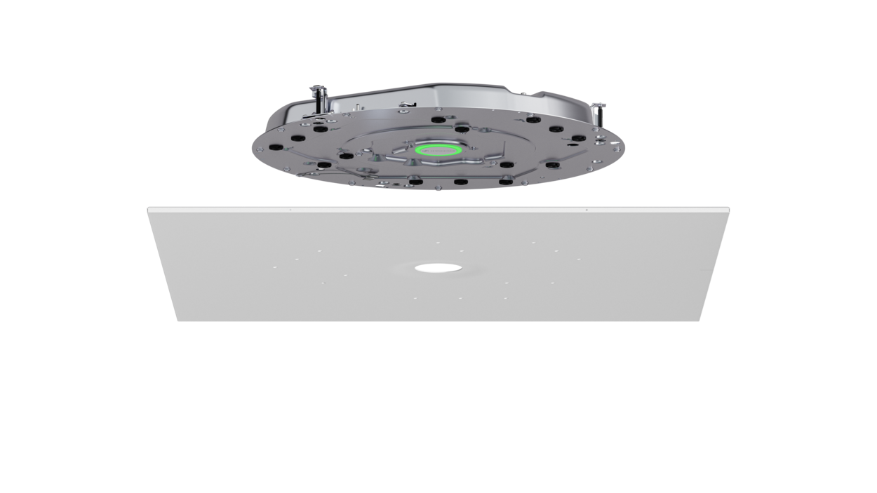 (Ceiling Tile Mount | White) TeamConnect Ceiling Medium Ceiling Tile is a new easy to fit leightweight square plate installation variation for the TeamConnect Ceiling Medium. The Ceiling Tile brings versatility and adaptability, elevating your meeting experience across a range of flexible and hybrid meeting spaces and learning environments.