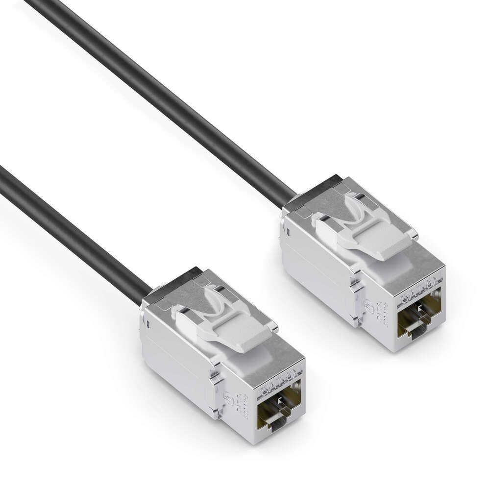 - Robust Shielded Keystone Modules: Both ends terminate in zinc diecast shielded RJ45 keystone modules with gold-plated pins. This configuration ensures durable mechanical performance and reliable signal integrity, addressing the demands of frequent use in modular AV connection systems.