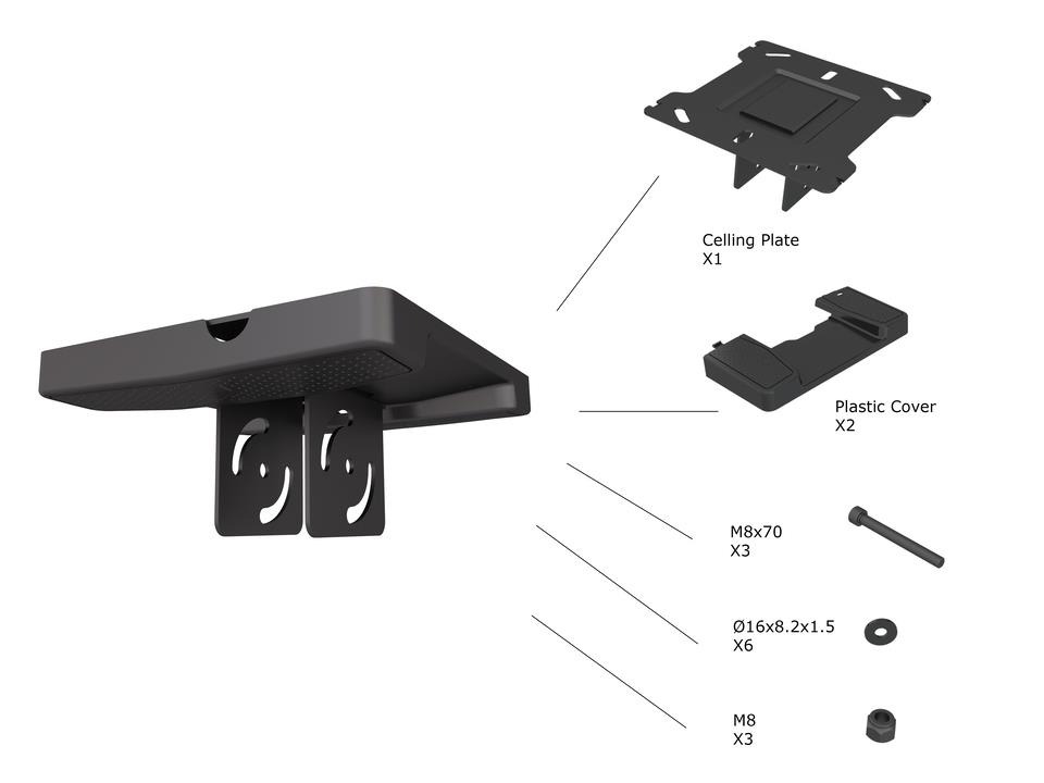 Pro Series - Ceiling Plate with Plastic Cover Black - Ceiling Plate with Plastic Cover Black, Part for Pro Series, steel and plastic mounts to concrete - black