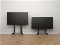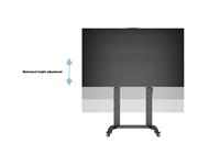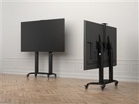Now you can mount flat panel screens up to 100" displays on a movable Floorstand with motorized up and down function of 500mm. With its black, textured powder coat finish it helps hide finger prints or dust. This Floorstand features an easy to position display height adjustment function that is unique. This innovative design with a built in stopper mechanism into the two columns creates a tool free and effortless TV height adjustment. This function reduces time consuming adjustments of height that is used on other floor stands. Now you in seconds can match your audience whether its sitting or standing up. For fast installation the base comes pre-assembled. VESA specifications ranges from 200x200 up to 1000x600 VESA display mounting pattern, and sturdy swivel casters –which are lockable to keep the Floor stand in it´s place. The integrated cable management system that helps keep your cables organized and out of the way. During its introduction this versatile Floorstand also comes with accessories such as the camera shelf included as standard.