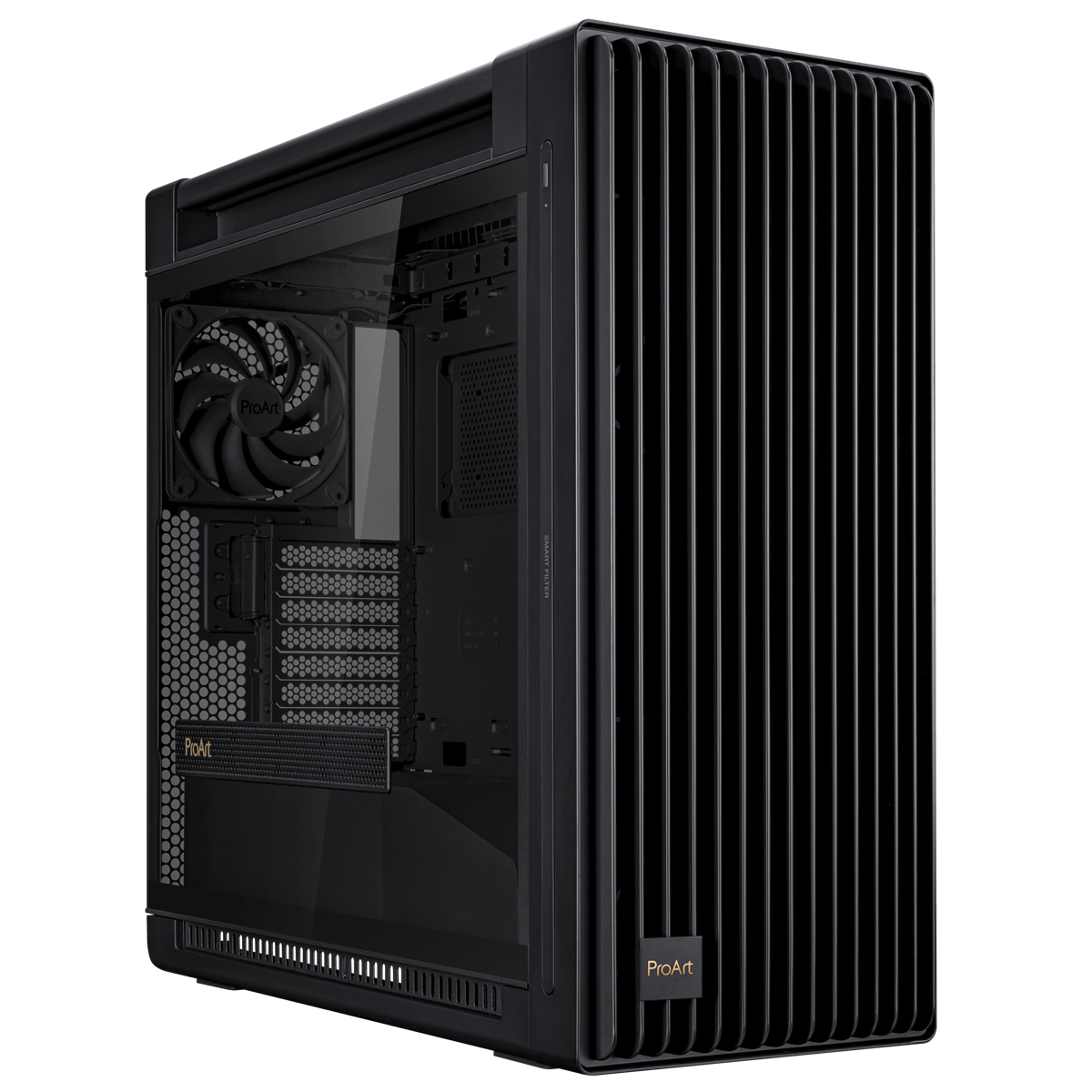 ProArt PA602 E-ATX (12"x10,9") computer case, 420 mm radiator support, one 140 mm and two 200mm pre-installed system fans, front panel IR dust indicator, power lock latch, tool-less PCIe mounting, USB 20Gbps support