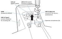 - USB-A 1x USB 2.0 Type-A för anslutning PC. För använding som konferenstelefon via USB