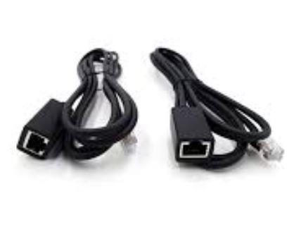 Two (2) dongle cables that enable the use of an ethernet cable of up to 30 m in length to extend the distance between the supported Poly video bar system and the Poly Studio Expansion Tabletop microphone.