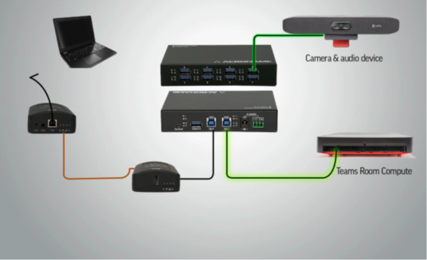 - Leverage Teams Room’s camera and audio resource to connect to user’s own laptop for any video app