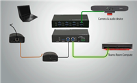 - Simple to use: automatically switches A/V resources from the room PC to laptop, and back to room PC, after removing USB