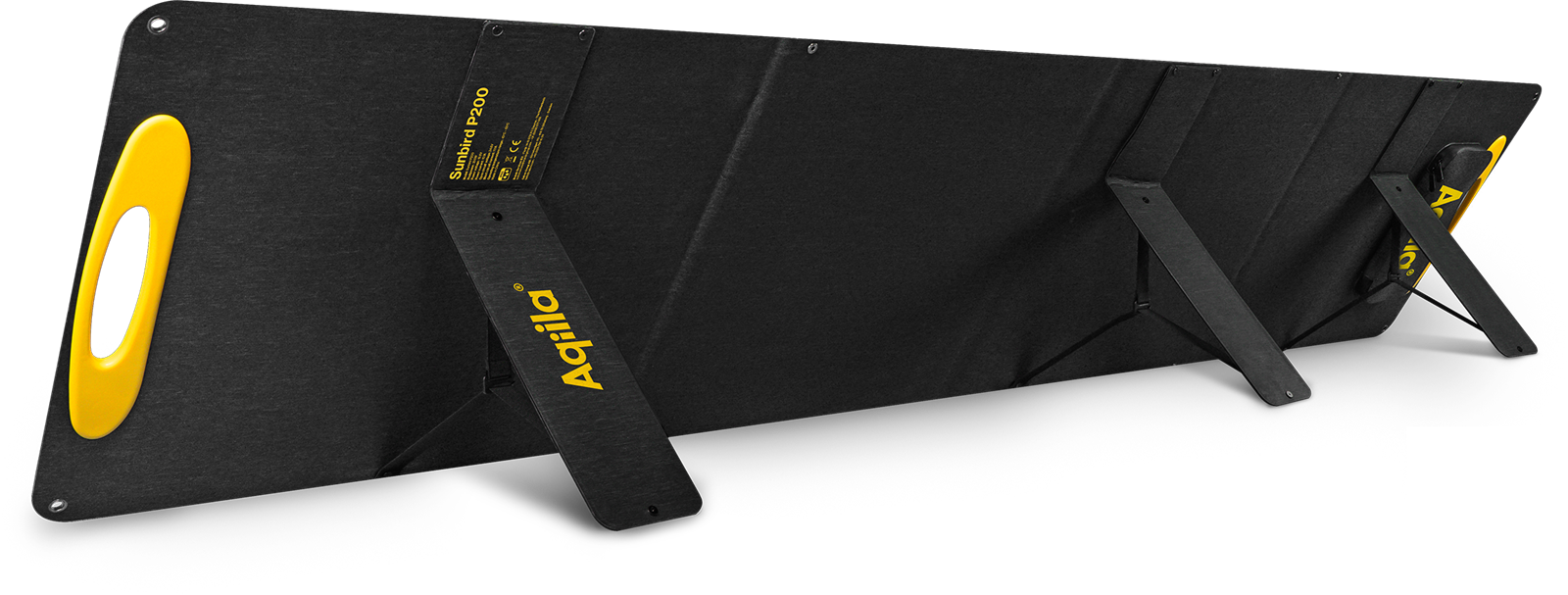 Sunbird P200 är en högeffektiv hopfällbar solpanel med justerbara fotstöd. Den fungerar utmärkt med Aqiila Powerbird powerstations och de flesta andra modeller av powerstations.