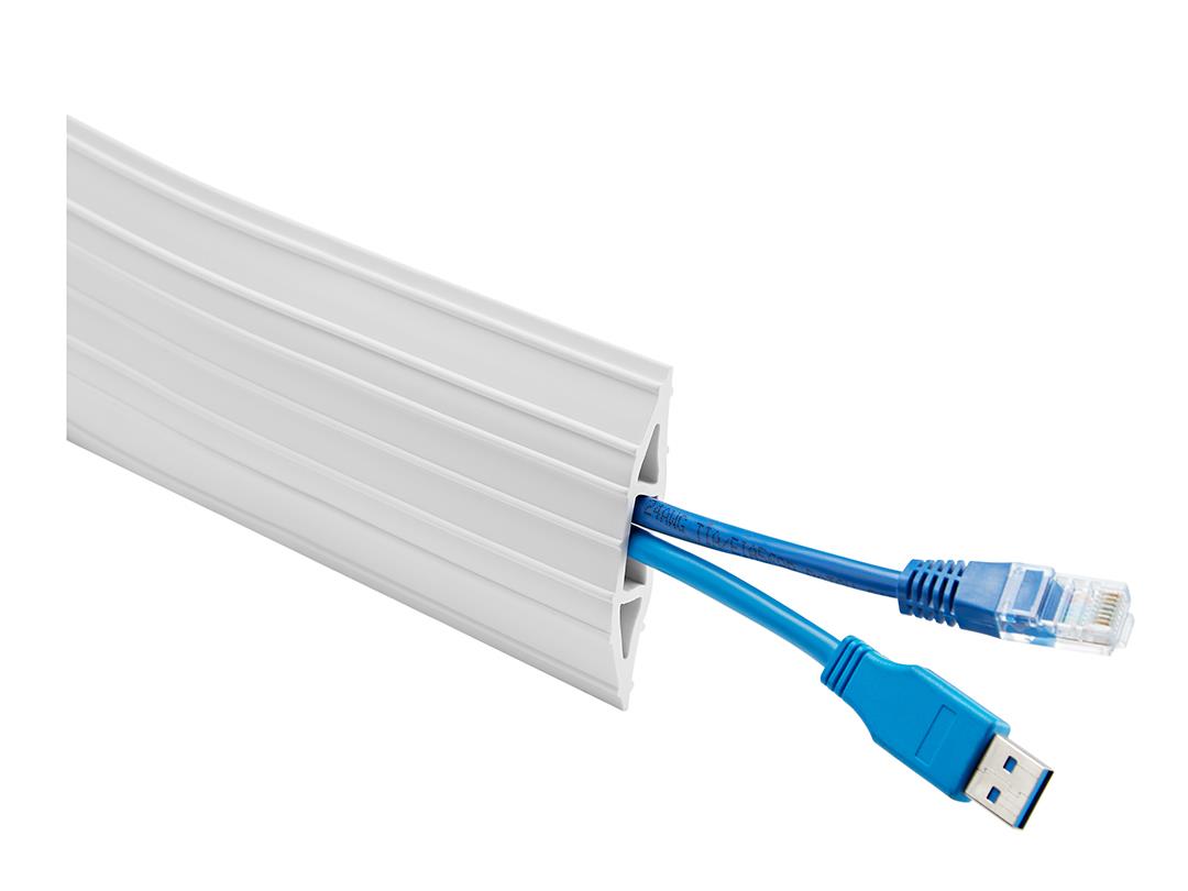 The M Floor Cable Cover is a super high quality PVC trunking system with clean Nordic design and the solution for hiding all surface wiring or pipework and suitable for Scart, HDMI, CRT, VGA and other mains leads.