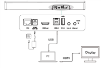- USB-B USB BYOD connection to PC (Camera, mic, speaker)