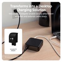 - Transforms into a flexible desktop charger with the included C8 adapter.