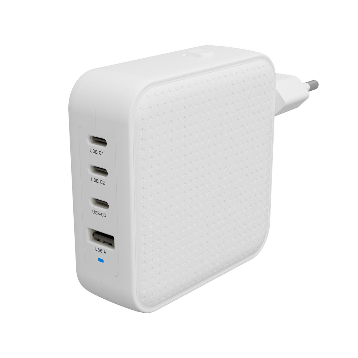 - Can power up to 4 devices simultaneously with its three USB-C ports and one USB-A port