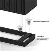 Versatile use is supported with the included base and wheels — move the cabinet easily between rooms or conceal the wheels for a stationary setup. The built-in anti-collision function protects both your TV and surroundings in confined spaces.