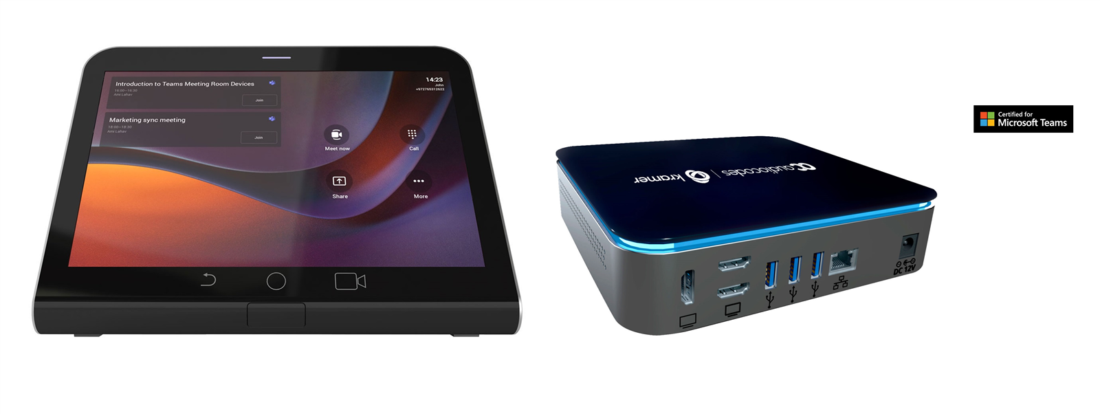 The Kramer/AudioCodes KAC−CU−200 Microsoft Teams Rooms on Android compute unit seamlessly connects a variety of audio and video peripherals, supports dual screens, and is equipped with a broad spectrum of AI capabilities, making your meetings smarter and more efficient. Combined with the KAC−TCH−10 Meeting Room Controller enables easy and seamless control for an enhanced and productive meeting experience.