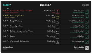 Just like the airport departure board shows a list of flights in chronological order, list your meeting room status. Ongoing meetings show at the top, followed by meetings that are about to start. Further down meetings later in the day can be found.