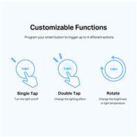 Program your smart button to trigger up to 4 different actions with single tapping, double tapping, and rotating controls.