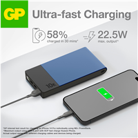 Laddar din telefon till mer än 58% på bara 30 minuter.* Med en laddningshastighet på upp till 22,5W kan du ladda två enheter på samma gång. Laddaren stöder PD 3.0-, QC 3.0-, PPS-, SCP-, FCP- och AFC-snabbladdning. Den har dessutom både USB-A och USB-C.