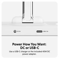 Choose whether you want to power the charging stand via DC or USB-C*. Featuring an additional USB-C input for power, users gain extra flexibility, particularly useful when a standard power outlet isn’t available.