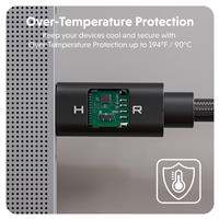 Each port connector contains E-marker chips with Over-Temperature Protection up to 194°F / 90°C that intelligently manages the safe and efficient delivery of power and data, to keep your devices from overheating.