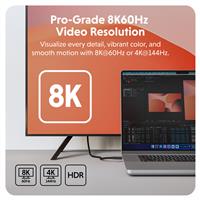 Connect your laptop to an external display and get up to 8K@60Hz or 4K@144Hz video output. Visualise every detail, vibrant color, and smooth motion, whether you’re gaming, designing, delivering a presentation, or extending your workspace.