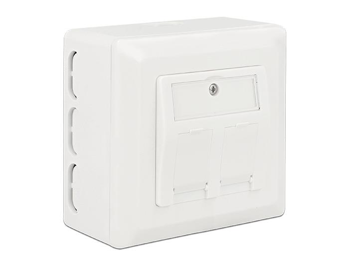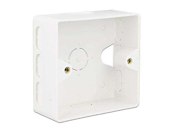 This back box by Delock can be used for surface mounting of wall outlets with 60 mm mounting holes, e. g. the Delock Keystone Wall Outlet 86202.