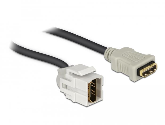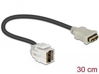 This module by Delock can be used to extend e.g. a HDMI cable. With its standardised dimensions it can be used for easy snap-in mounting in e.g. a Keystone patch panel, face plate or surface-mount box. The short, angled cable has a small mounting depth and allows a space-saving installation in hard to reach places in equipment or in cable ducts.