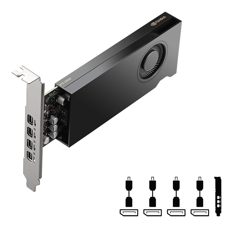 The NVIDIA RTX™ 2000E Ada Generation brings the power of NVIDIA RTX to more professionals with a powerful low-profile, single-slot graphics processing unit (GPU) design. It delivers hardware-accelerated real-time ray tracing, AI-accelerated compute, and high-performance graphics to creative professionals in a half height, half-length, single slot form factor workstations.