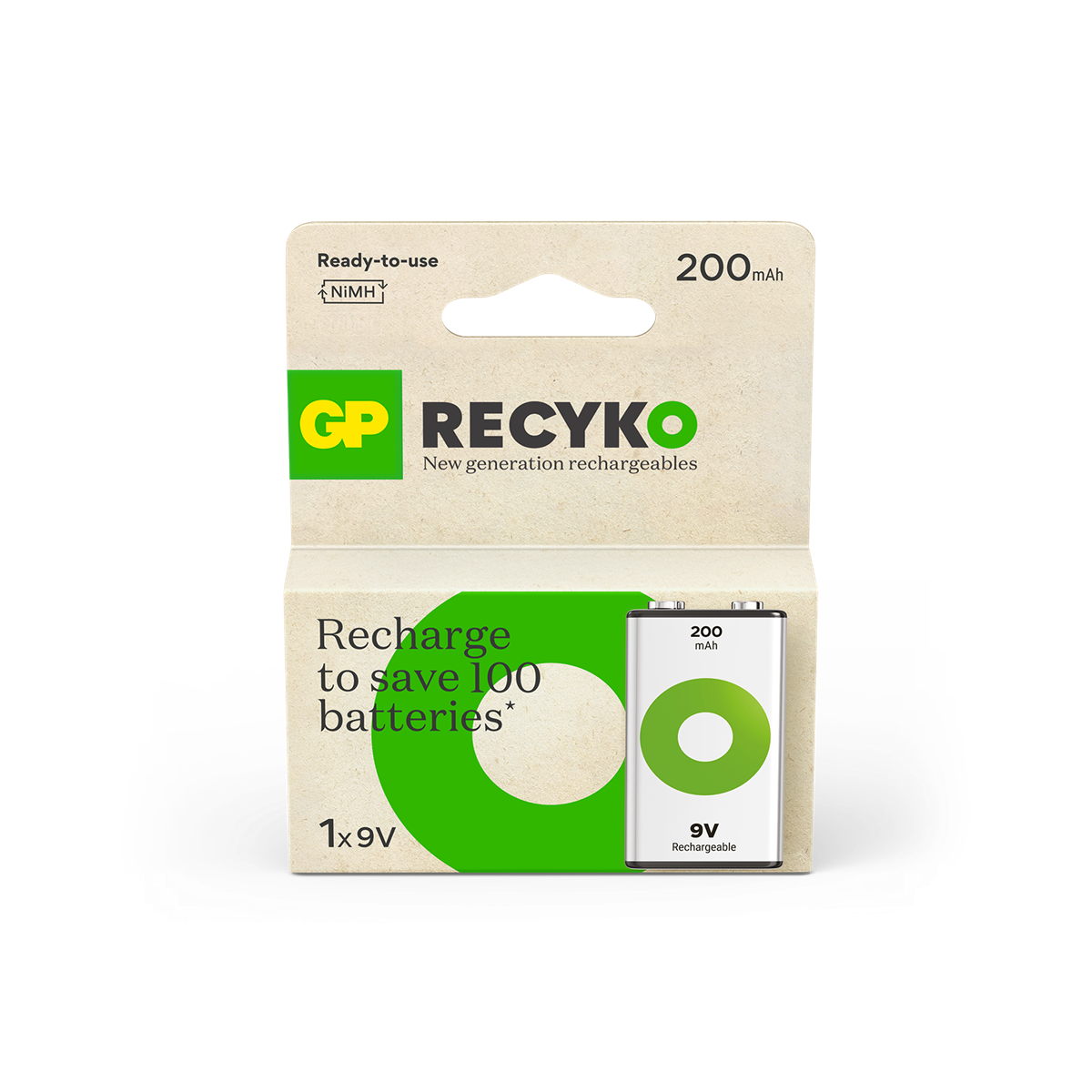 GP Recyko 9V-batteri, 200mAh, 1-pack