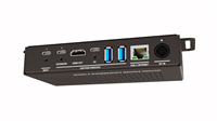 O-PC-4 has an internal DP MST hub which allows for dual video output and a Windows laptop can select “Extend Desktop” to show different contant on each display. For installations with two HDMI displays, a USB-C to HDMI-adapter can be inserted into the Extension port to get a secondary HDMI out. Apple MacBooks will replicate the same image on both displays.