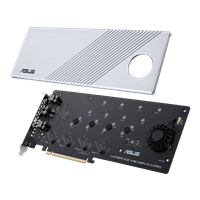 The ASUS Hyper M.2 x16 Gen 4 Card has four M.2 slots — supporting both PCIe 3.0 and 4.0 — that allow you to expand your system with high-performance SSD storage. Designed for the latest generation of NVMe drives, the card features an upgraded power supply that provides up to 14W of power per drive, as well as a large heatsink and active fan to ensure that drives stay cool for optimum performance.