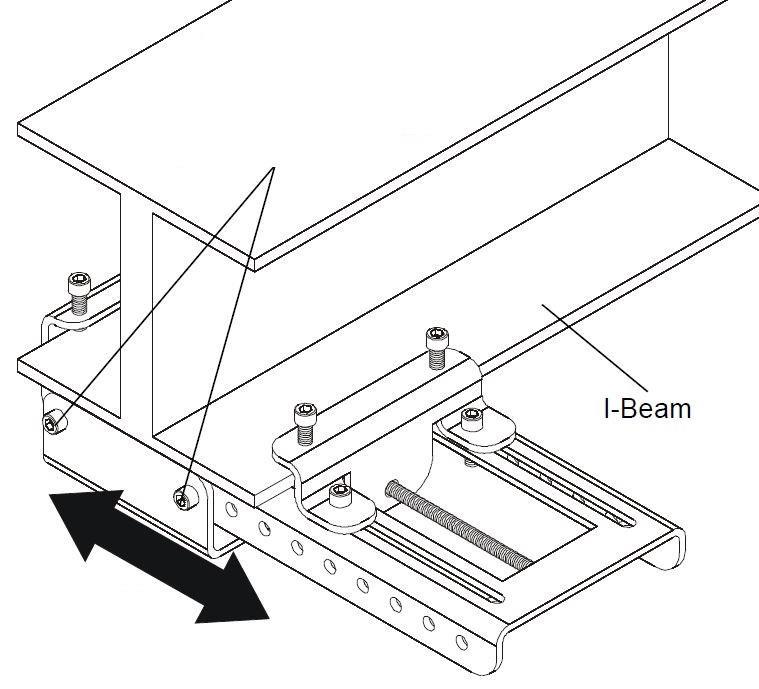 Adapts a 1.5" NPT column to an I-beam truss from 4"-12" (72-305 mm) width. Clamps to I-beams and transitions to vertical extension column