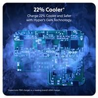 The HyperJuice GaN Charger is 22% cooler than a leading charger brand. With its efficient thermal management and safe operation, Hyper's advanced GaN (Gallium Nitride) technology allows for more efficient power conversion, leading to a cooler charging experience.