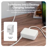 - Transforms into a flexible desktop charger with the included C8 adapter.