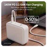 Capable of 145W PD 3.1 charging speeds through either of the top 2 USB-C ports, allowing you to fast charge a MacBook Pro 16-inch at the fastest possible speeds, from 0-50% in about 28 minutes. *
