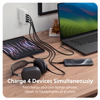 - Can power up to 4 devices simultaneously with its three USB-C ports and one USB-A port
