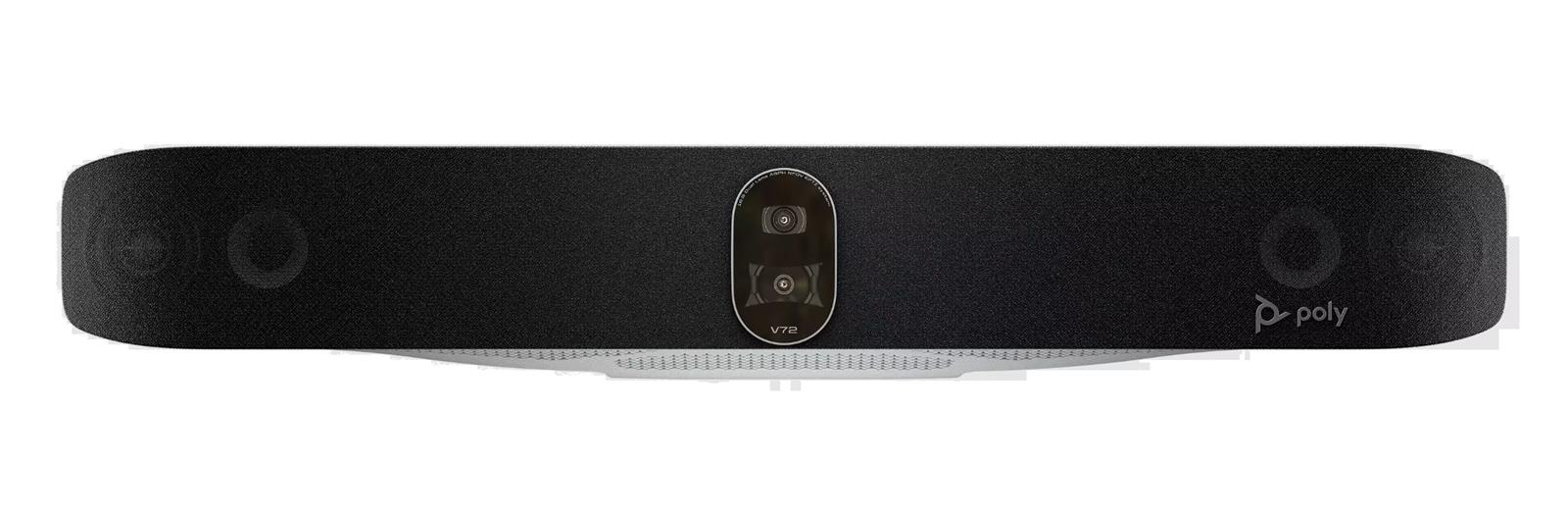 Easily install the Poly Studio V72 premium USB video bar in PC-based large rooms for scalability, advanced A/V, and certified cloud compatibility.