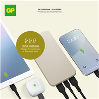 Håll dig laddad enkelt med GP Plus Series PowerBank, som är designad för att ladda upp till tre enheter samtidigt. Perfekt för dig som är en tung användare – den laddar effektivt din smartphone, surfplatta, smartklocka, hörlurar och mycket mer