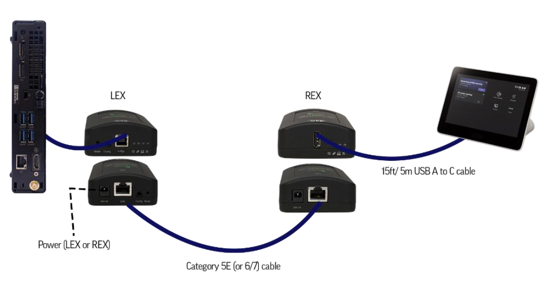 The USB 2.0 extender with flexible power extends high-speed USB 2.0 connections up to 100m/ 330 ft using widely available CAT 5e/6/7 cable, making it a breeze to install a Poly GC8 touch controller in large room or custom room einvornment