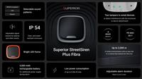 Superior StreetSiren Plus Fibra är nästa nivå av signalering av larm och händelser i ett Ajax säkerhetssystem. Med valbara larmtoner och omöjlig-att-missa LED-indikering avskräcker enheten inkräktare, visar systemets säkerhetsstatus och ger en efterlarmsindikering. Dessutom har den en Chime-funktion och varnar användare om förseningar när de går in eller går. Sirenen har en kraftfull trådbunden kommunikationsräckvidd på upp till 2 000 m utan linjeförlängare, extra strömförsörjning vid larm och flerskiktigt sabotageskydd. En enda Fibra-linje kan rymma upp till 10 sirener och är skyddad mot kortslutning, spoofing och ledningsbrott. Sirenen kan erbjuda tillförlitligt skydd inomhus och utomhus och fjärrkontroll via Ajax-appar.
