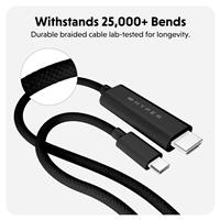 Made from a durable, braided jacket of nylon and PVC that has been tested to withstand over 25,000 bends. In addition, the HDMI and USB-C connectors contain 85% recycled plastics.