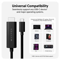 Directly connect your USB-C device to a HDMI display, with the HyperDrive USB-C to HDMI 4K60Hz Cable, a universal cable that allows you to easily share 4K HDR content, without the need for an adapter. The USB-C to HDMI cable features a durable braided 8ft/2.5m cable that has been tested to withstand over 25,000 bends. With universal USB-C compatibility*, the cable allows users with an iPhone 15, iPad, Android and other tablet USB-C devices to simply connect and start displaying media in 4K60Hz HDR directly from their mobile device – perfect for video creators, gamers and more.