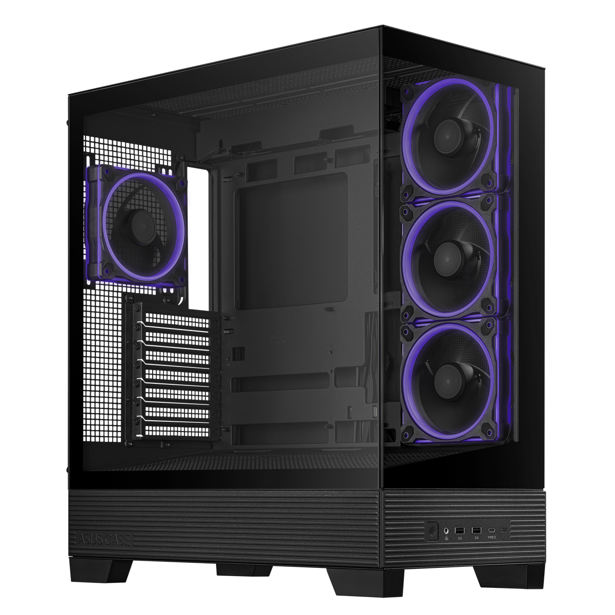 The ASUS A31 PLUS ATX case offers support for hidden-connector motherboards, 360mm radiators and 380mm graphics cards, with Black or White color options, four pre-installed ARGB fans and clean cable management.