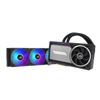 The full-coverage cold plate covers all the heat-generating components on the PCB, empowering the radiator to efficiently cool the graphics card, resulting in up to 30% better performance versus pure air cooling.