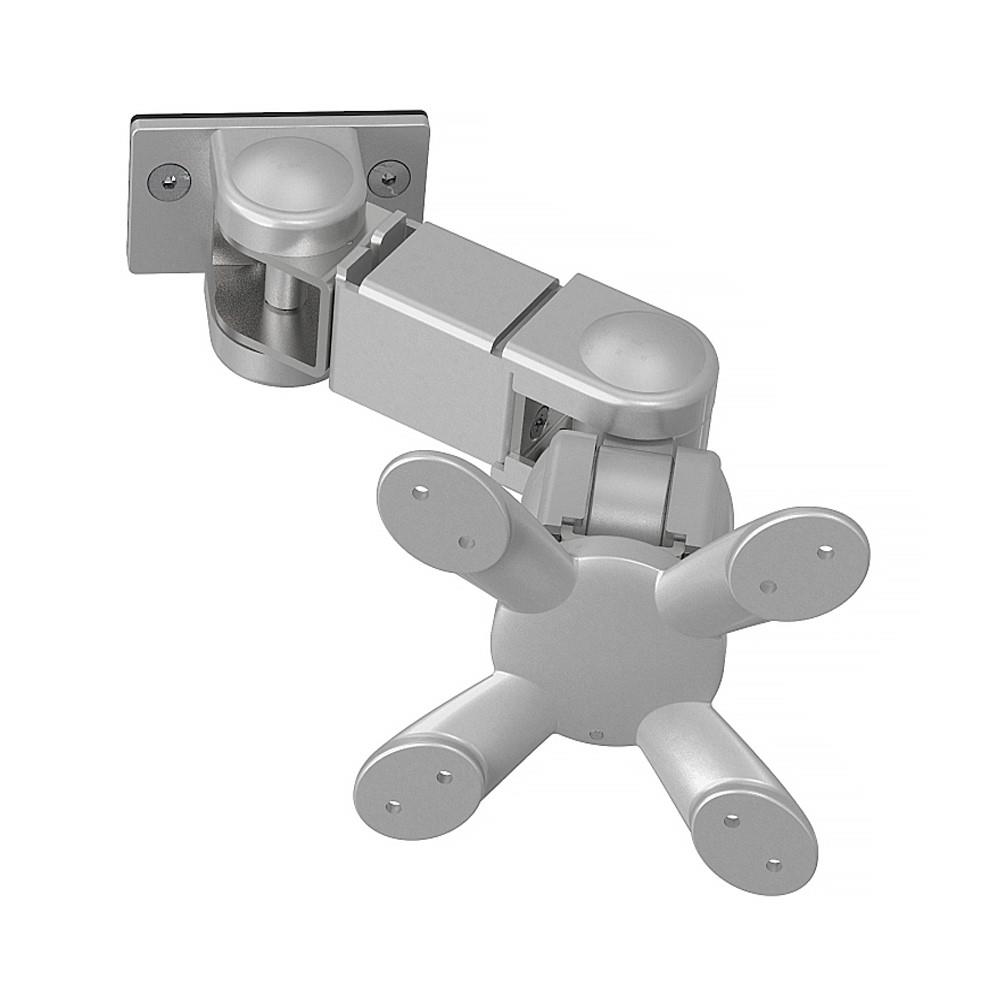 Triple jointed monitor mount, VESA 75/100, rail mounted, silver